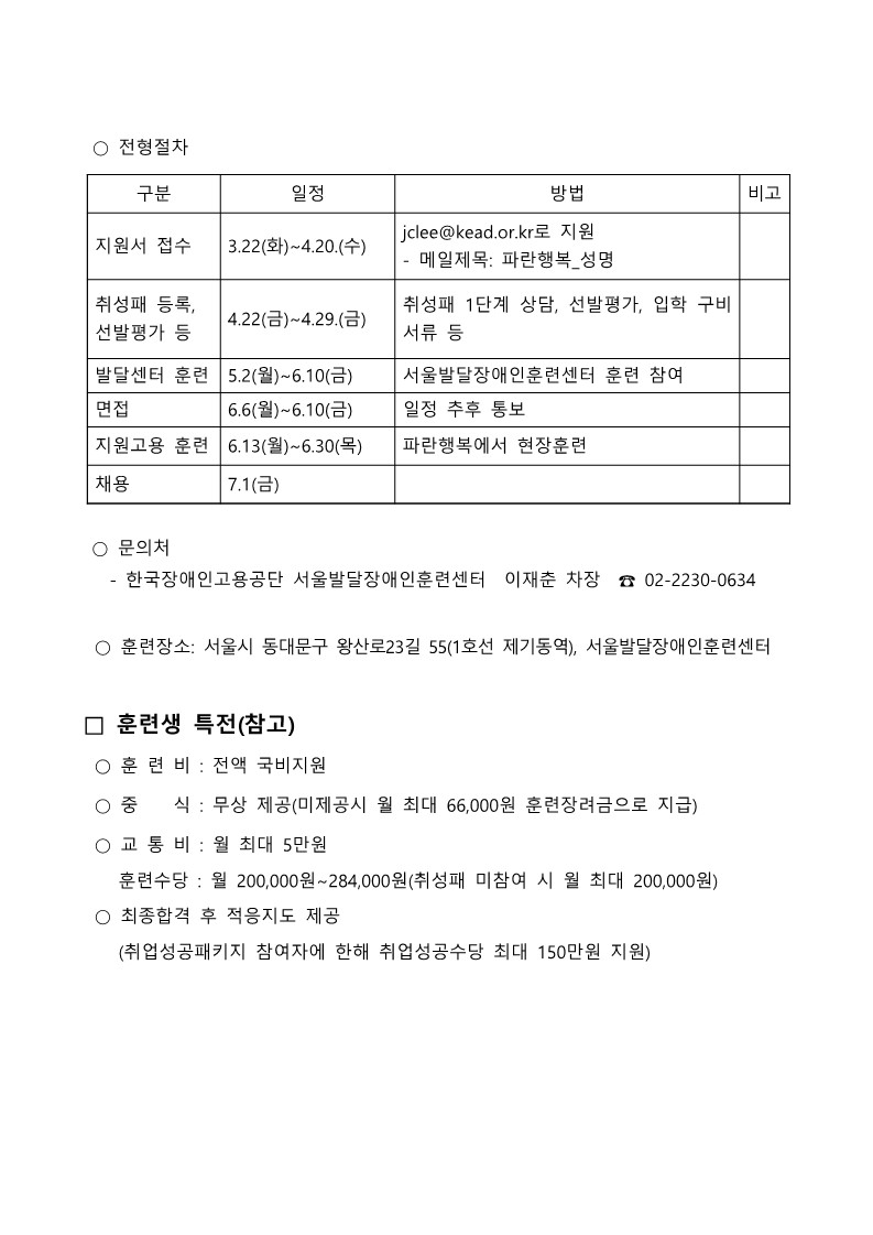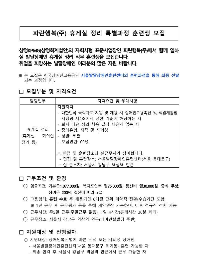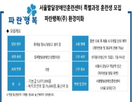 장애인표준사업장 휴게실 정리 특별과정 훈련생 모집