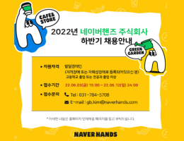 2022년 하반기 네이버핸즈 발달장애인 공개채용이 진행중입니다.
